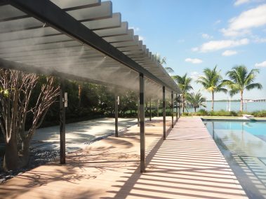 The Misting Store’s outdoor cooling system can be integrated and installed in porches, pool decks, summer kitchens, pergolas, rooftop decks and lanais. We can work directly with the homeowner, your designer, architect or builder in designing the ultimate application in an outdoor mist cooling system.