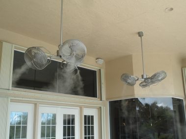 Installation is similar to any standard ceiling fan mount and when operating will distribute air to a much larger area. A TRI-MIST fan will create over 3600 cfm. This not only creates more cooling airflow, but when on acts as an abatement to flying insects.