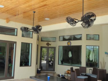 The TRI-MIST ceiling fans are outdoor rated with sealed motors and can be used in either residential or commercial outdoor applications. Light kits available.